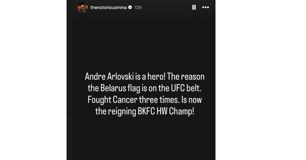 The Irishman also lauded the newly crowned BKFC heavyweight champion via another message on his Instagram story that reads: