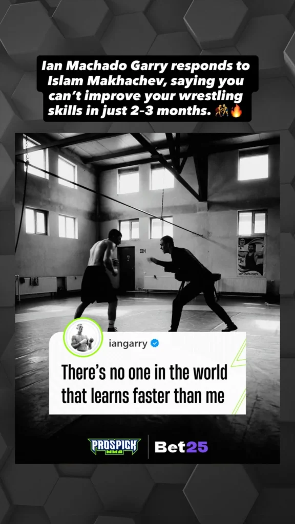 The short-notice risk-taker Ian Machado Garry wasted no time in responding to Islam Makhachev’s above comments. Garry shared some training snaps of himself working on his wrestling in Georgia with the following caption as a response to Makhachev: