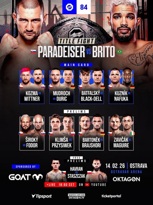 The vacant welterweight championship is on the line when Oktagon 84 kicks off live from Ostravar Aréna in the Czech Republic.