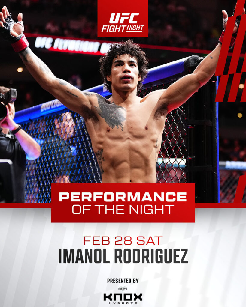 - Flyweight Bout: Imanol Rodriguez def. Kevin Borjas via TKO (overhand right to ground-and-pound) at 4:21 of Round 2.